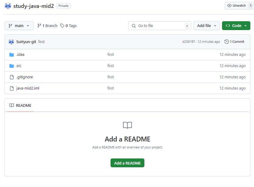 6. GitHub에 들어가면 코드가 올라온 것을 볼 수 있습니다.